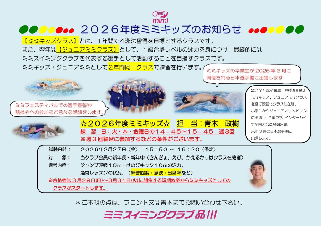 ◆対象者:2026年度 新年中、新年長のきんぎょ えび、かえるかっぱ在籍者