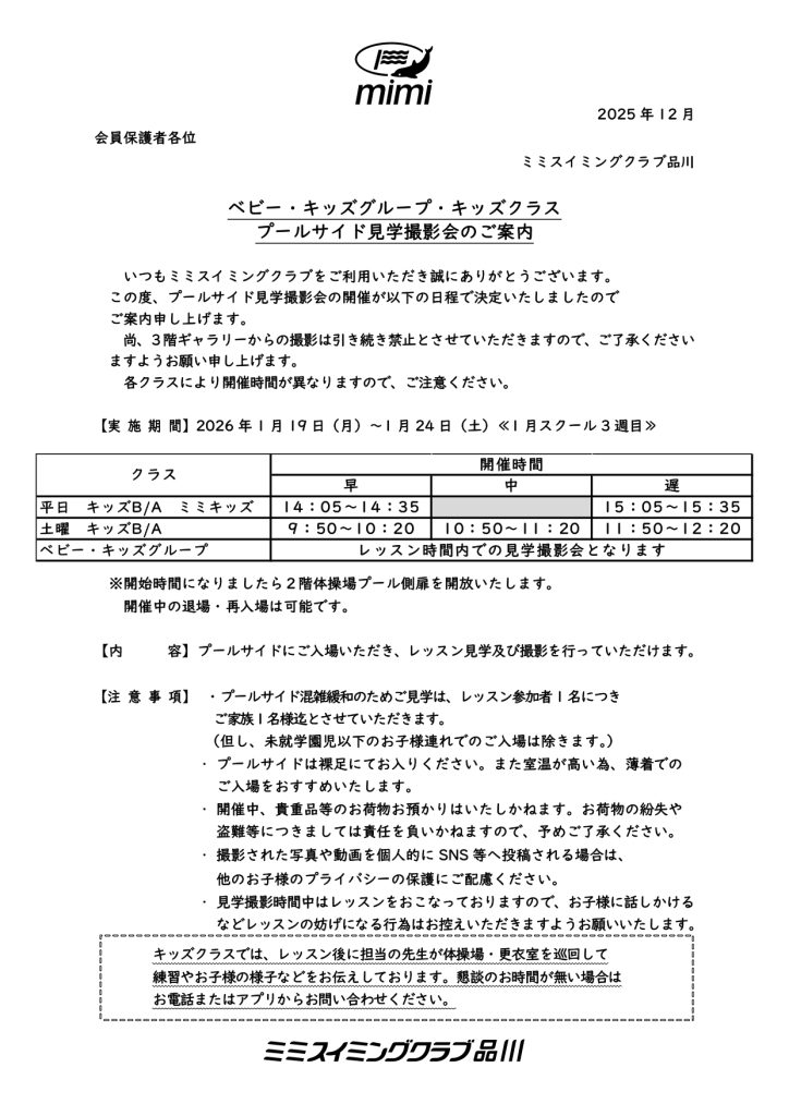 この機会にぜひお子様の成長 上達の様子をカメラ・ビデオに お収めください!
