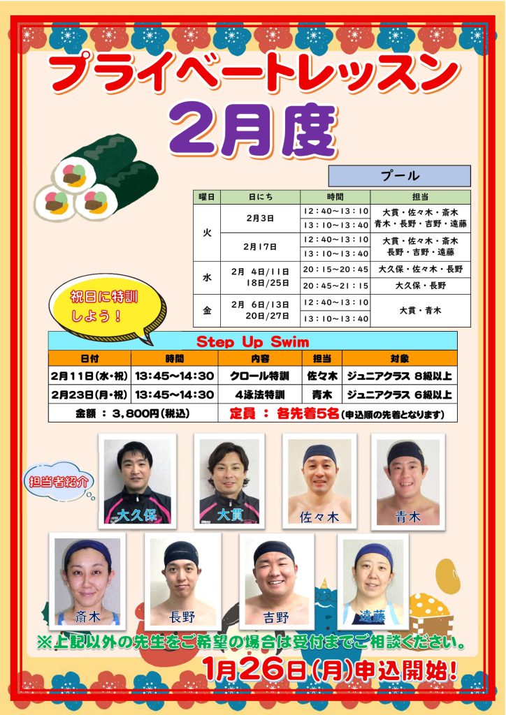 2月度プライベートレッスンの 受付を1月26日(月)10時から開始いたします✨