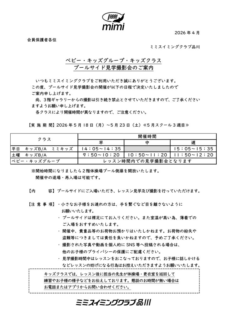この機会にぜひお子様の成長 上達の様子をカメラ・ビデオに お収めください!