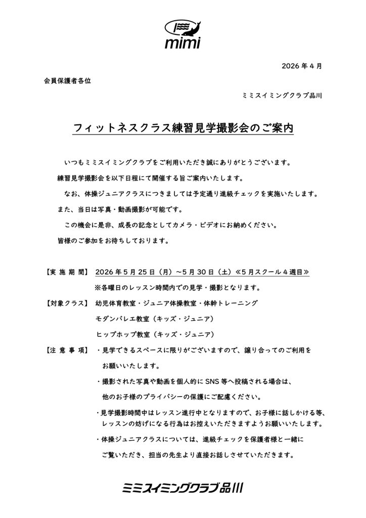 この機会にぜひお子様の成長 上達の様子をカメラ・ビデオに お収めください!