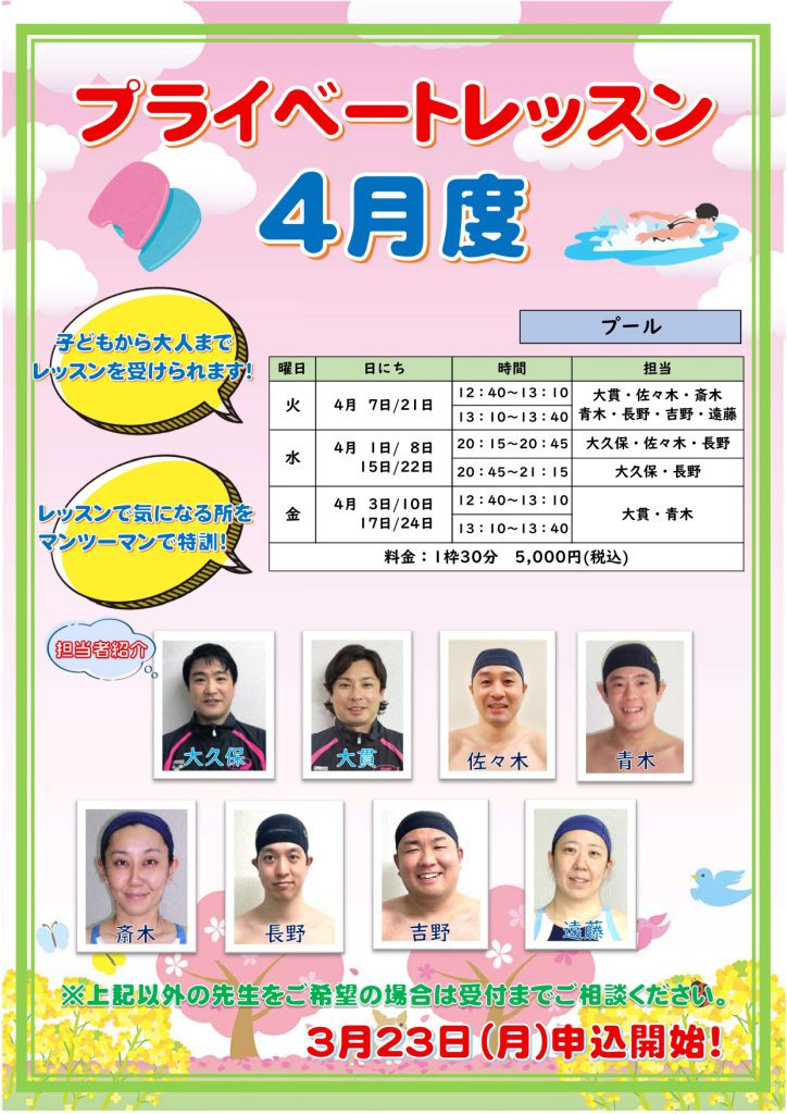 4月度プライベートレッスンの受付を