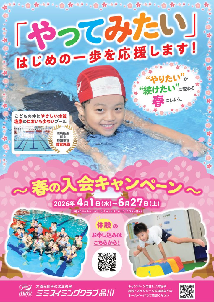 ミミスイミングクラブ品川は、子どもの体にやさしい水質で、塩素のにおいも少ない安心プール🏊♂️💧
