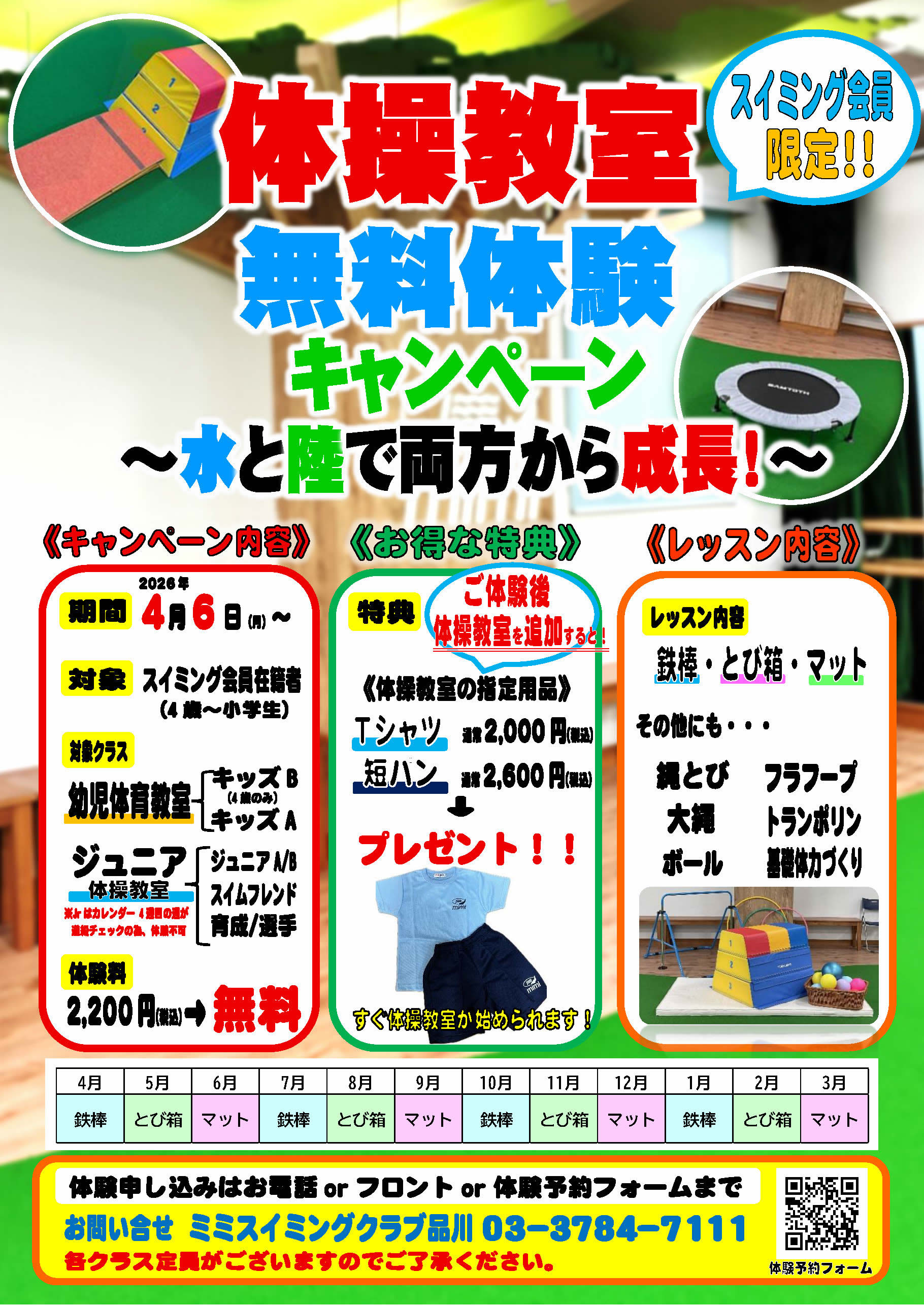 但し、体験レッスン受講後、6ヶ月以内に当クラブへご入会の手続きをいただく場合には、相当金額分(2,200円)を入会金より割引きいたします。